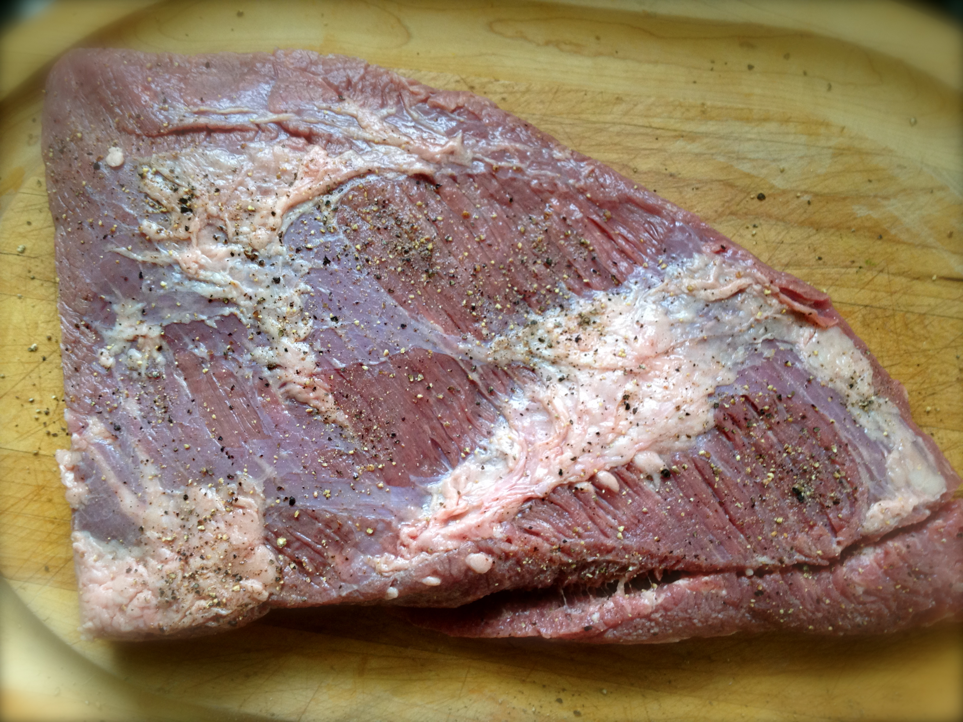 But I digress.  Since I don’t observe Jewish tradition and there are no large family celebrations in our neck of the woods, I don’t have any need to impress the family with my Jewish cookery (thank goodness, I say!).   I made Gefilte fish a couple of times in an attempt to impress my husband, but his goyish heart just wasn’t set on it, so I gave it up.  My culinary repertoire is now almost completely devoid of Jewish tradition, except I still like insane amounts of onion in everything.  Once in a while I do have a hankering for something traditional, but the possibility of doing all that hard work to only eat it all by myself doesn’t inspire me.  And so my inner Jew is resting peacefully, and only starts nagging when I see something ultimately Jewish, like brisket, laying around in a store.