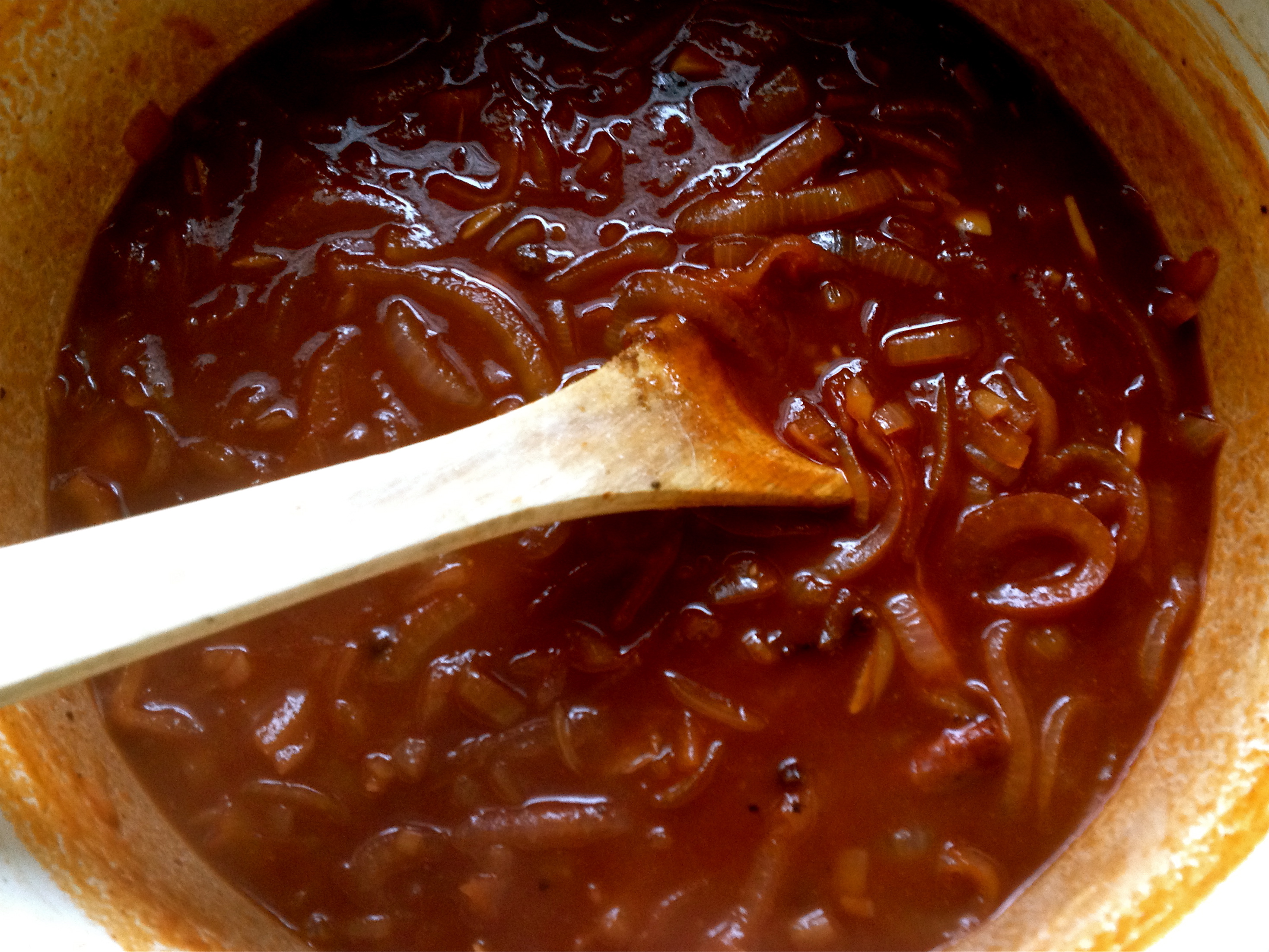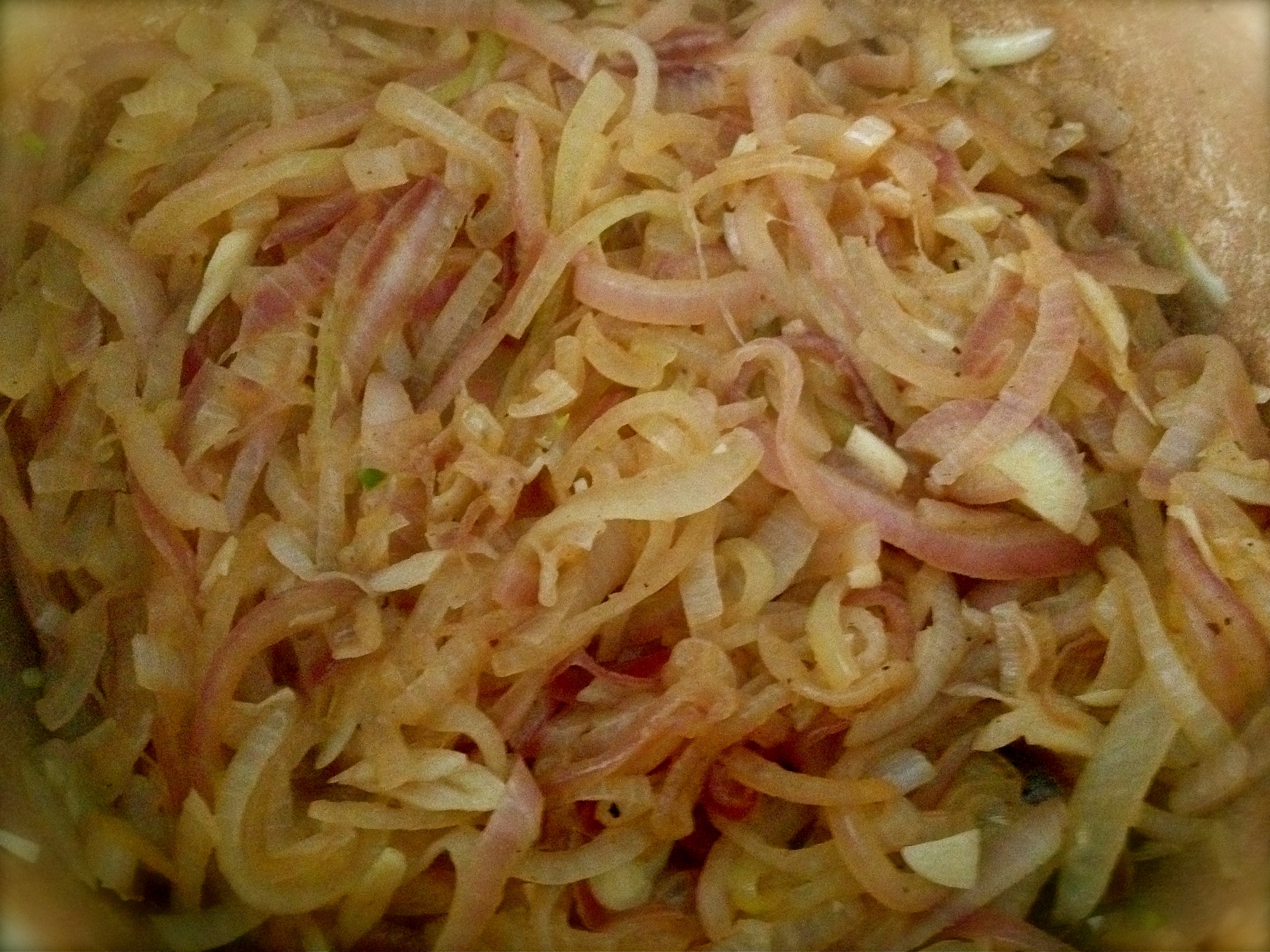 The basic sweet and sour stew, calls for a little bit of fatty meat, lots of onion, and a whole loaf of bread to thicken the gravy in the end.  I decided to forgo the bread part, as my waist line isn’t getting any thinner, and keep the rest, just reduce the amount of liquid. What you see below is a compilation of several recipes (some are Russian), with many adjustments I had to make on the fly.