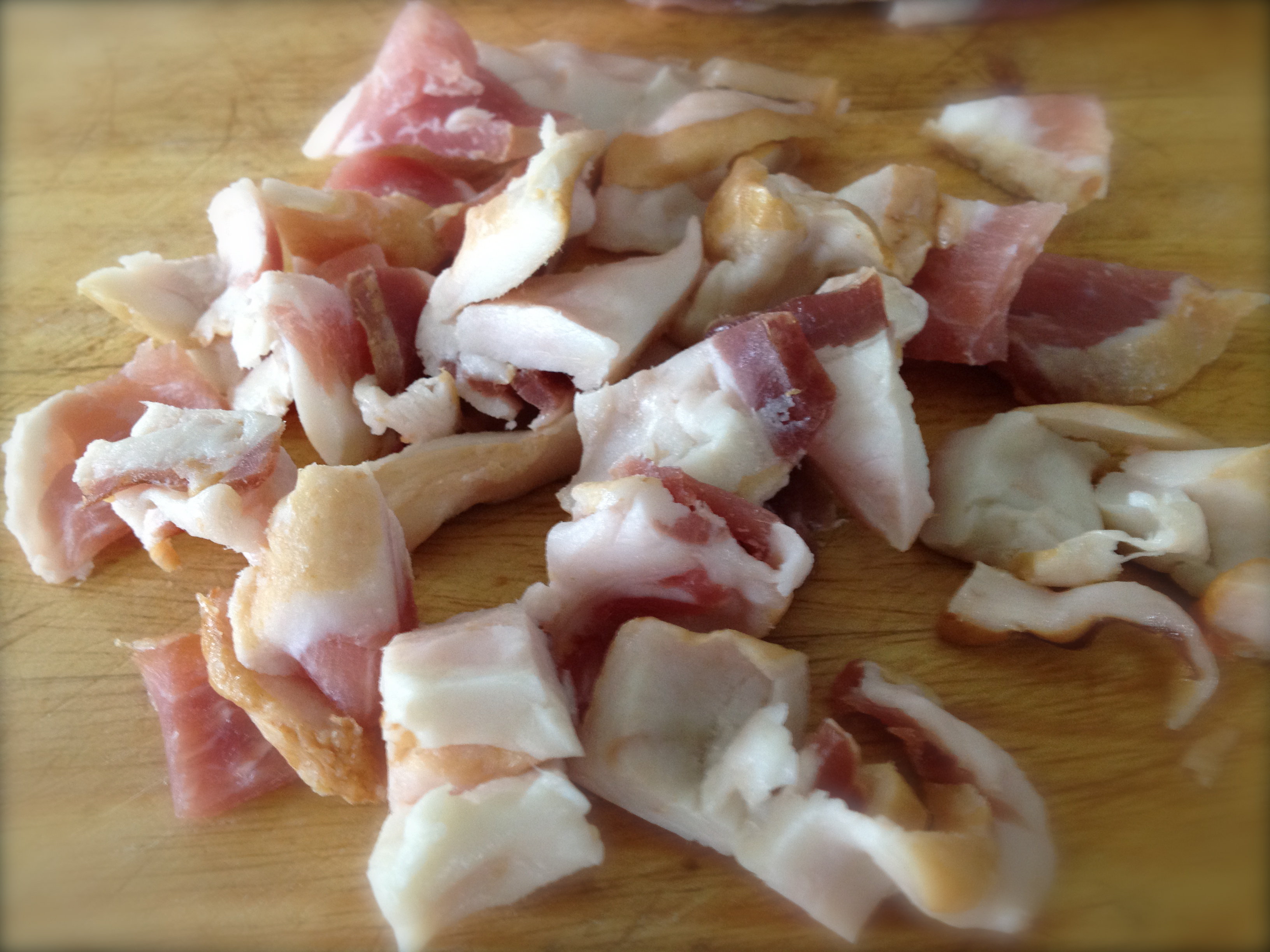 You are here: Home » Know Your Treif — Pork Stew with Prunes » Bacon scraps I purchase at the market