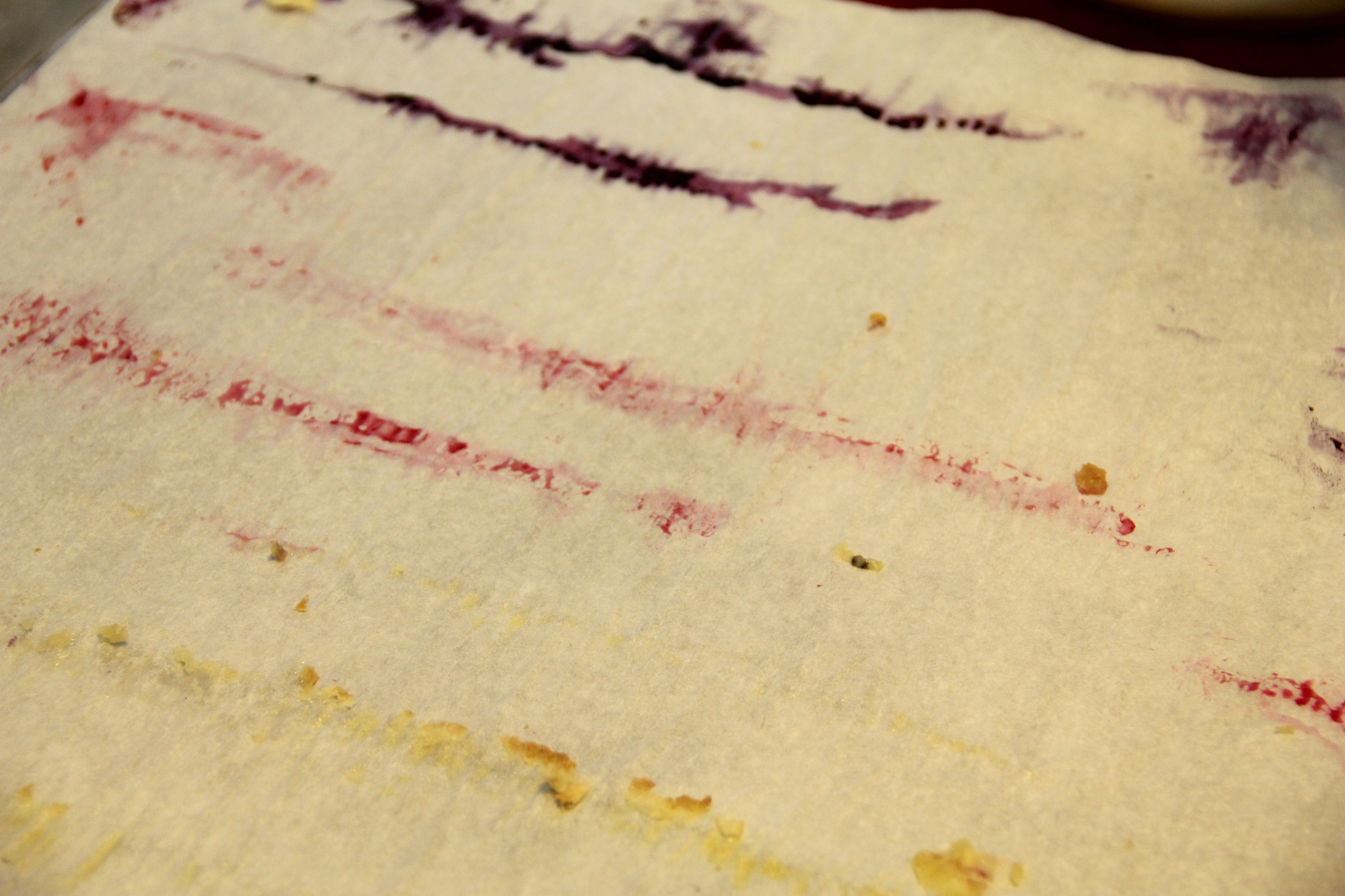 You are here: Home » Eat Like An Egyptian… The Enigmatic Pyramid Cake » Fruit juice streaks on the parchment.