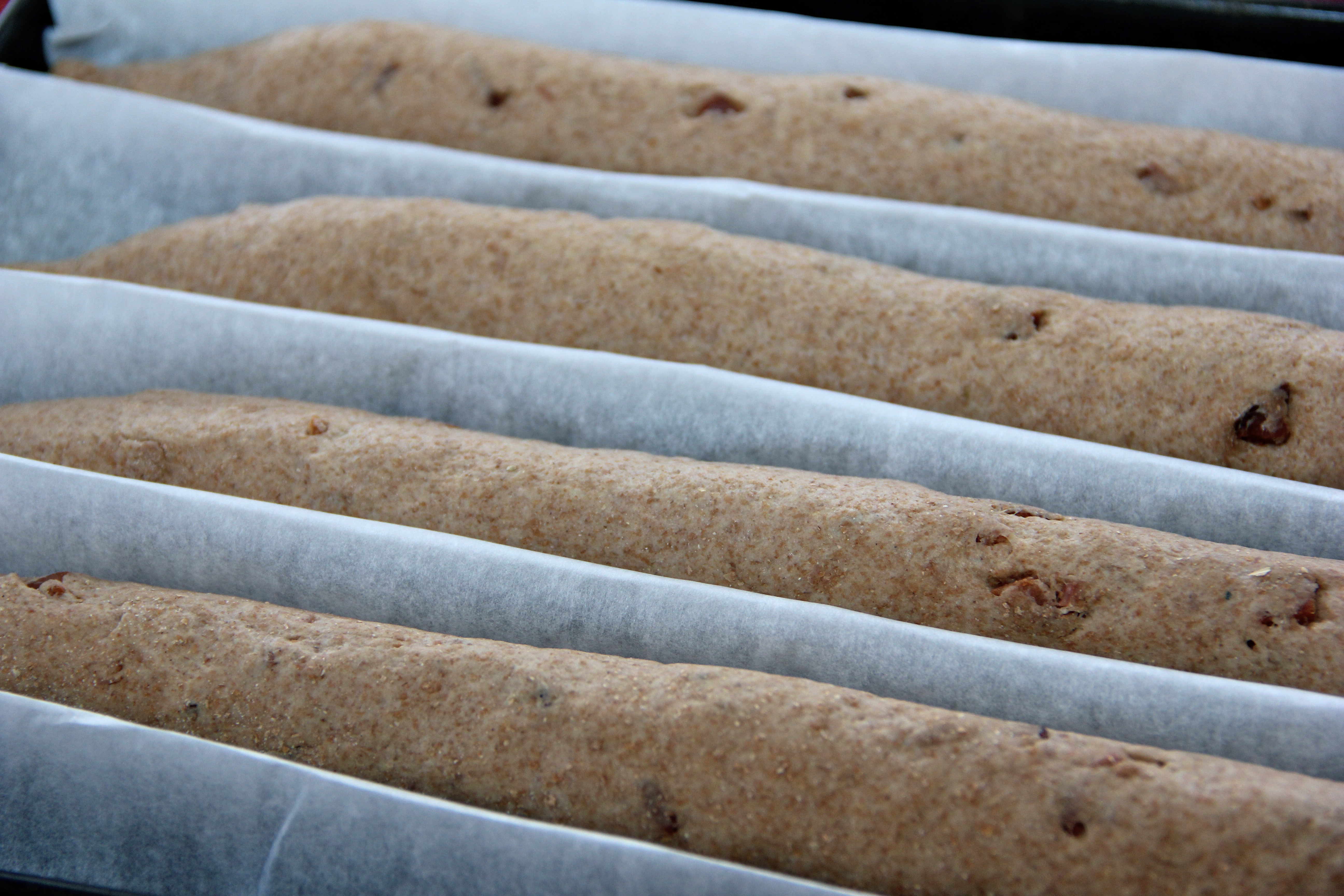 Final proofing of rye baguettes with bacon